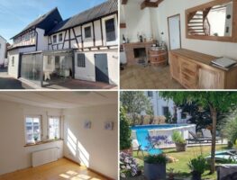 Das Vorderhaus ist ein saniertes Fachwerkhaus von 1640 mit 97m² Wohnfläche und ein massiver Anbau mit 64m² Wohnfläche im Obergeschoss und zwei darunterliegenden Doppelgaragen mit einem Lagerraum.