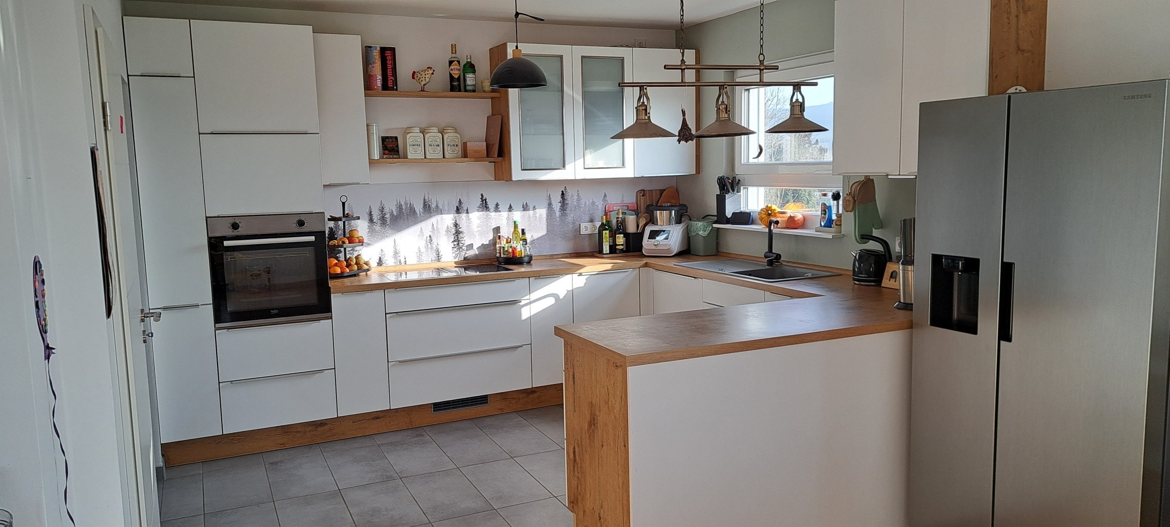 Das EG wird dominiert durch den Küchen- und Wohnbereich. Die helle Einbauküche und die Vorrichtung für einen Kamin im Wohnbereich bringen Gemütlichkeit. Von hier geht es auf die große Terrasse und in den Garten mit Gartenhütte und integrierter Rutsche im Hang. Die Außenanlage ist nicht fertiggstellt. Ein Duschbad + ein Gästezimmer liegen auf der Etage. Im OG erwarten Sie 3 Zimmer und das geräumige Bad mit toller Eckbadewanne. Im Souterrain befinden sich noch 2 weitere Räume + der HWR. Über einen Abwurfschacht vom DG/EG in den Keller landet ihre Wäsche direkt hier.