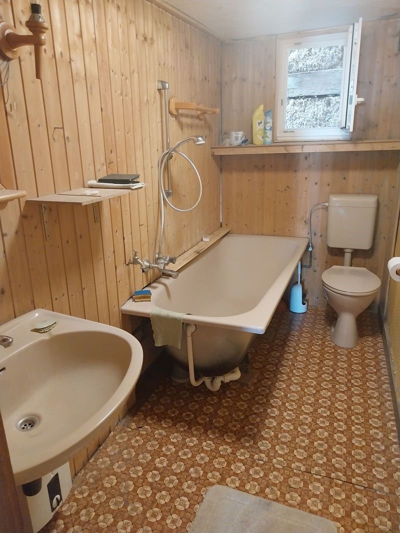 Im Obergeschoss befinden sich 3 Schlafzimmer und ein Bad mit Badewanne.