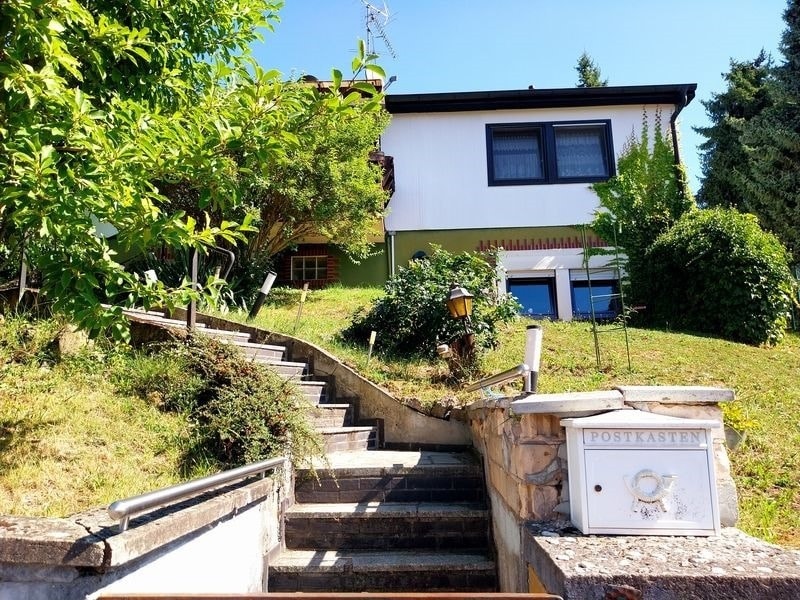 Durch die Hanglage befindet sich die große Doppelgarage im unteren Bereich des Grundstückes.