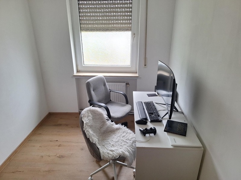 OG: Flur, 6 Schlafzimmer, Büro, Bad mit Wanne und Dusche, Gäste-WC, Ausgang zum Garten