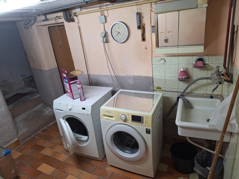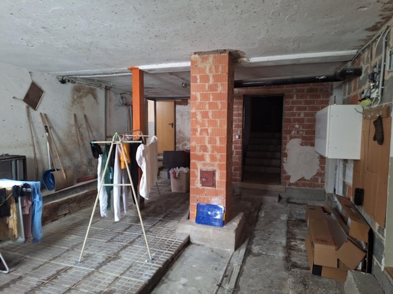 EG: Flur, Küche, zwei Vorratsräume, Wohnzimmer, Waschküche, großer Abstellraum