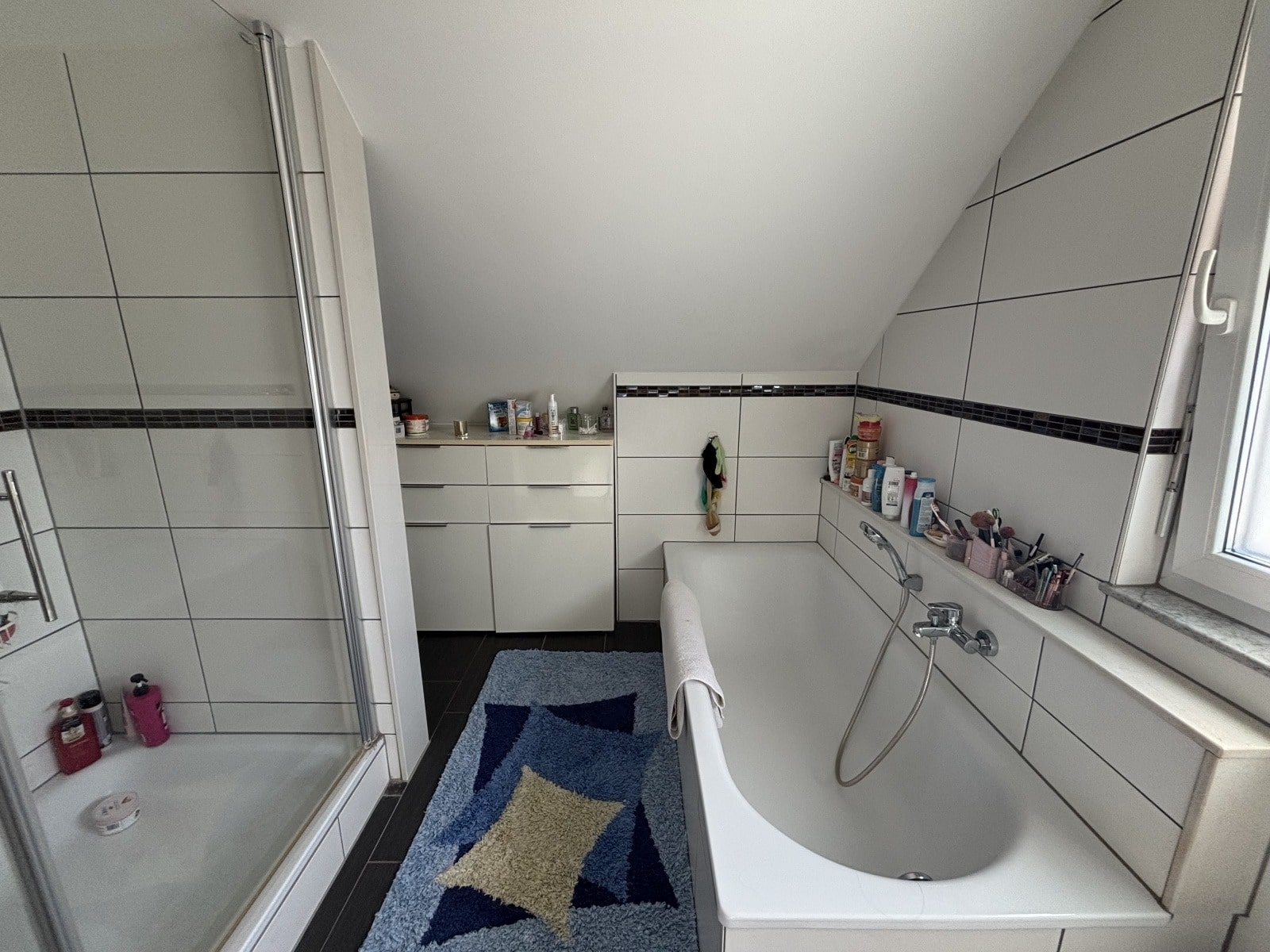 DG: 3 Zimmer, Tageslichtbad mit Wanne + Dusche und Flur.