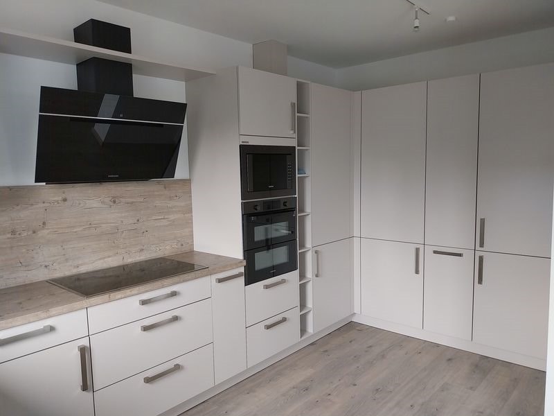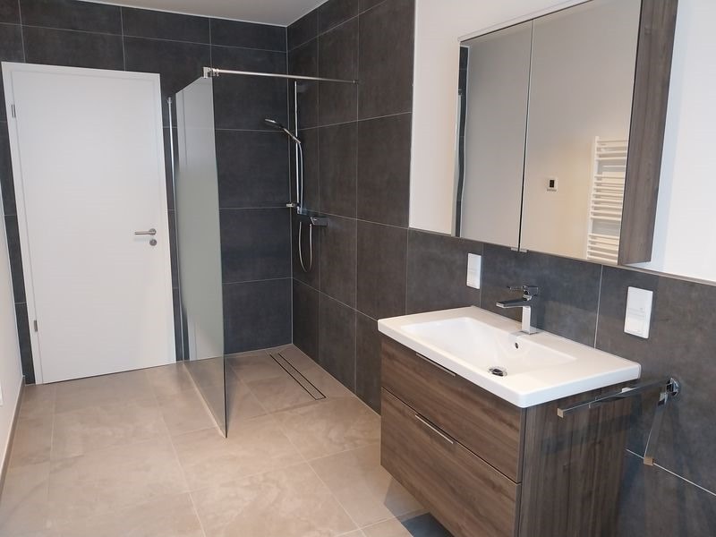 Es stehen auf 91m² ein großes Wohn-/Esszimmer mit einer offenen, hochwertigen Einbauküche und Balkon, ein Schlafzimmer, ein Kinder- oder Arbeitszimmer und ein Bad mit bodentiefer Dusche zur Verfügung.
