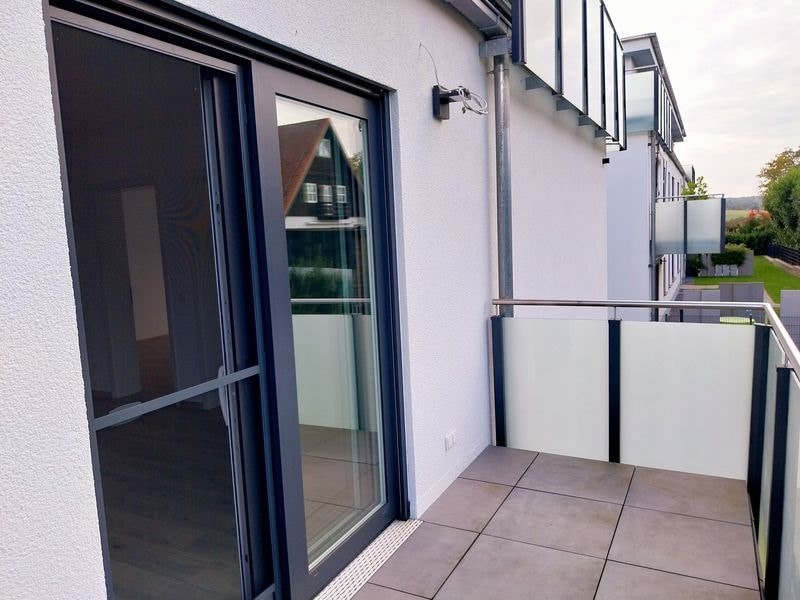An der Balkontür wurde eine Fliegengittertür angebracht.