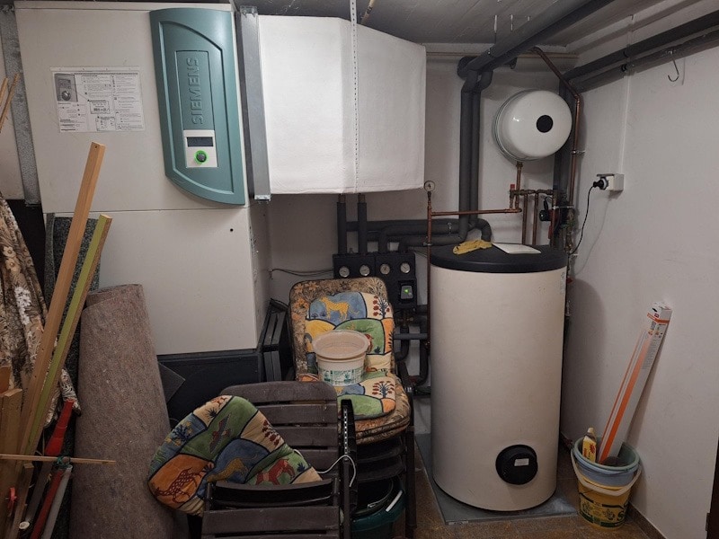 Das Haus wird mit einer Wärmepumpe beheizt und verfügt über einen guten energetischen Wert. Das Dach ist mit Faserplatten gedeckt, diese sind asbestfrei.