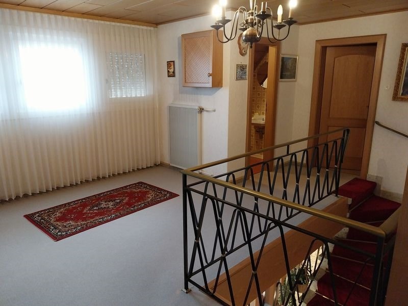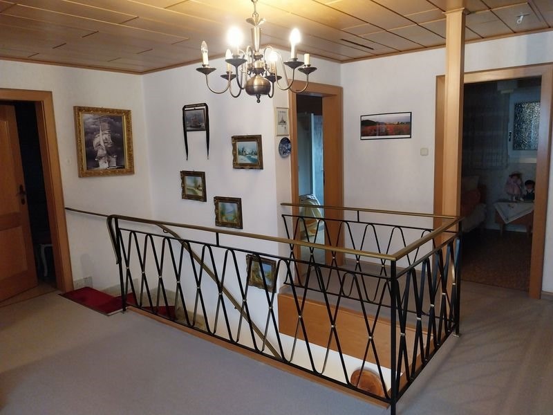 Im Obergeschoss befindet sich ein großer Flur mit Sitzecke, ein Schlafzimmer mit Balkon, drei Kinderzimmer und ein Bad mit Badewanne und Dusche.