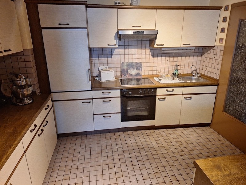 EG: Flur, gr. Wohnzimmer, Schlafzimmer, Küche, Bad mit Wanne und Dusche, Waschküche