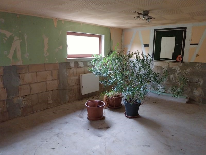 Im Untergeschoss befinden sich ein Gästezimmer, ein WC, ein großer Wohnraum, der Heizungsraum mit Waschmaschine, eine Garage und ein Lagerraum, welcher auch als Bad ausgebaut werden könnte.