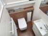 EG: Flur, Gäste-WC, Wohnzimmer mit Esszimmer und offener Küche sowie Ausgang zum Balkon