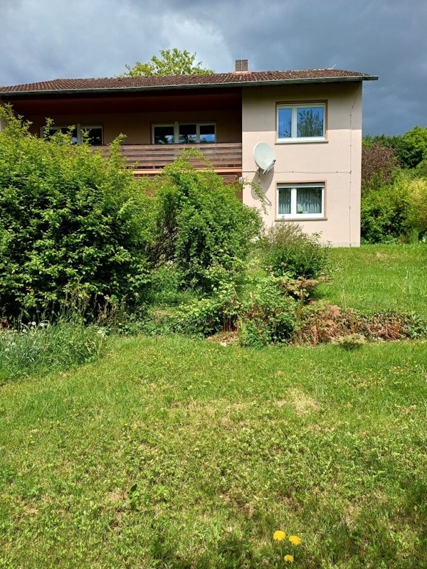 Dieses massiv gebaute Einfamilienhaus steht im Alsfelder Ortsteil Eifa. Es wurde großzügig gebaut und ist für das Baujahr in einem guten Zustand. Die Fenster wurden erneuert, der Öl-Zentralheizung steht das noch bevor. Eine komplette Innenrenovierung ist hier angebracht, aber die lohnt sich auch. Denn das Haus steht in einer ruhigen Wohnlage am Ortsrand und bietet von der Terrasse und dem Garten – erst Recht vom Balkon im OG – einen wunderbaren Ausblick über den ganzen Ort in die schöne Landschaft des Vogelsbergs.