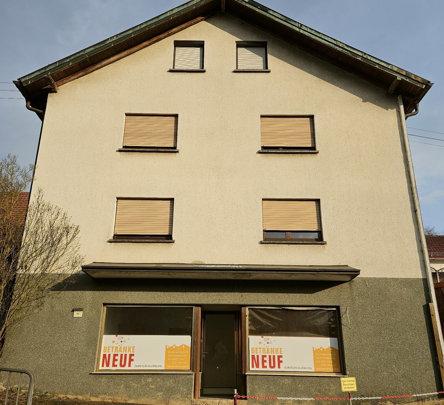 Durch die Hanglage ist der Keller von vorne ebenerdig begehbar mit einem 36m² großen Laden, einem WC, einer Waschküche, einem Lagerraum und dem Heizungsraum.