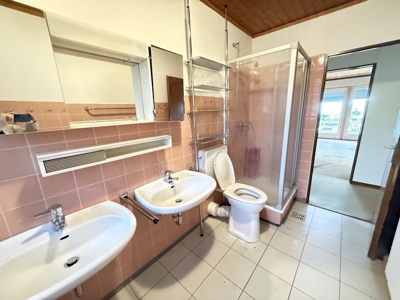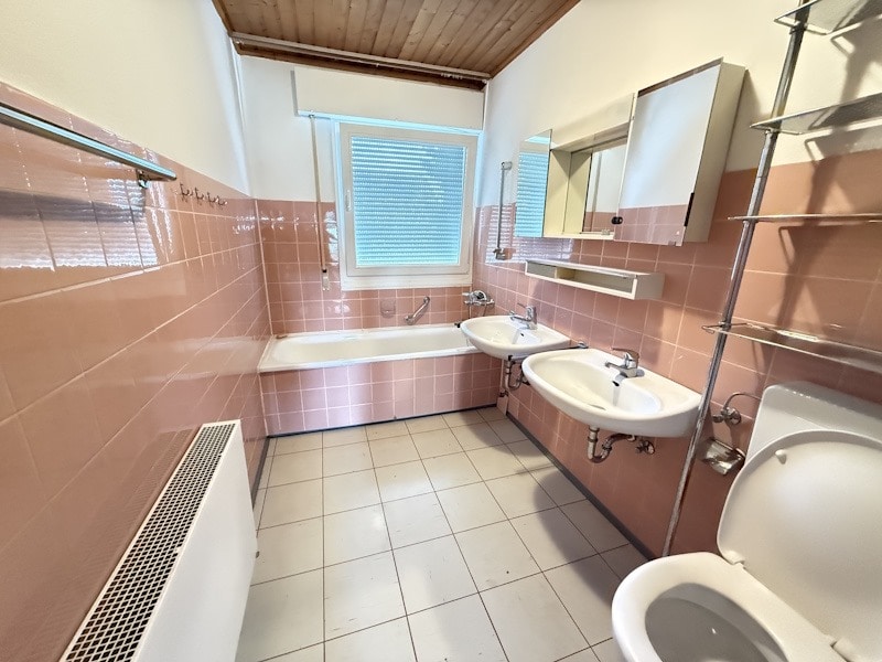 Kellergeschoss / Souterrain: ELW (vermietet) mit 2 Zimmer, Küche, Bad, GWC, Kellerraum, 2 Zimmer, Waschküche, Heizungsraum