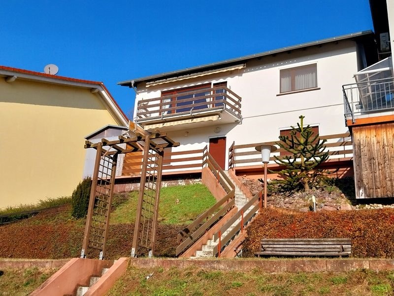 Das ältere Haus von 1964 bietet auf insgesamt 105m² Wohnfläche ein Esszimmer, eine Küche, ein Wohnzimmer mit Zugang zum Balkon, ein Schlafzimmer, ein Kinderzimmer und ein Bad mit Dusche.