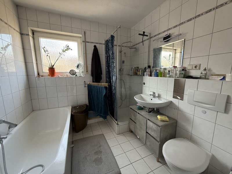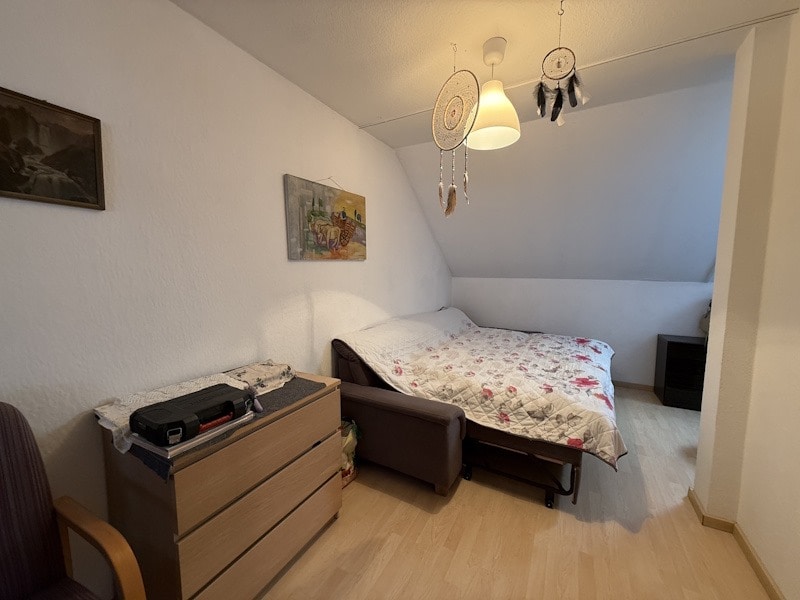 OG: Flur, 2 Zimmer, kl. Abstellkammer, Tageslichtbad mit Wanne und Dusche.
