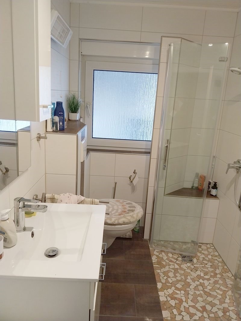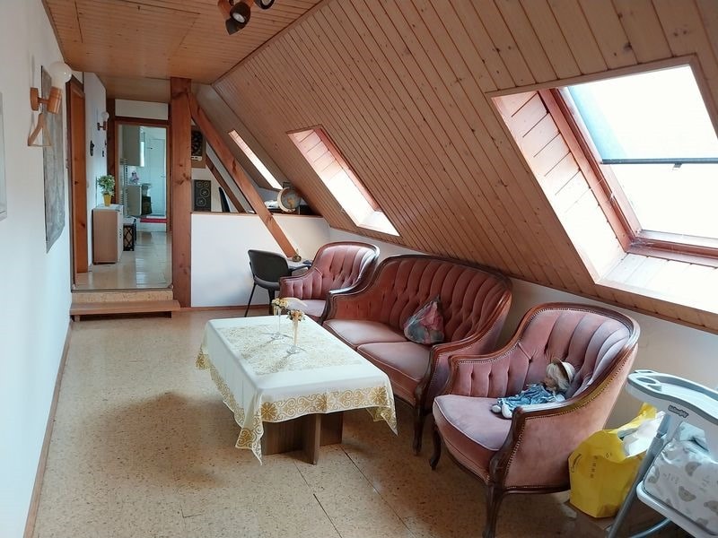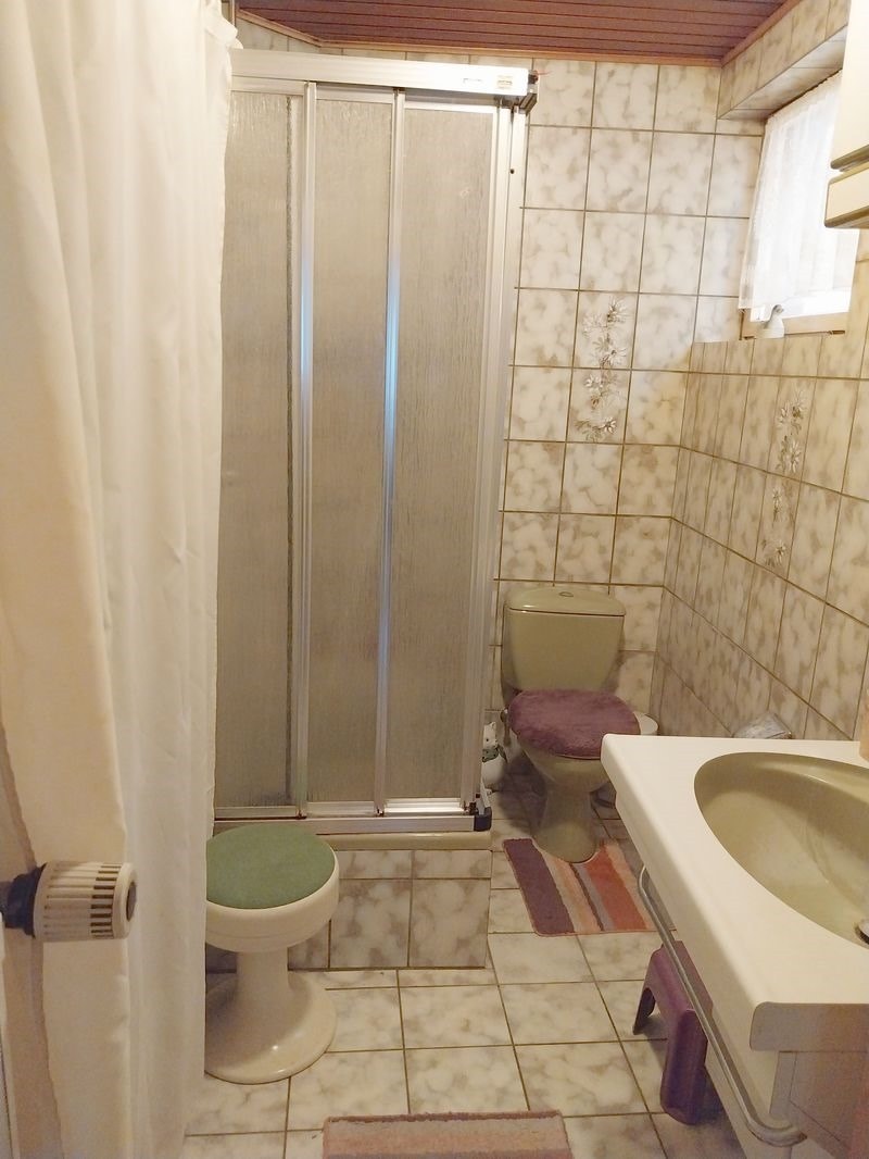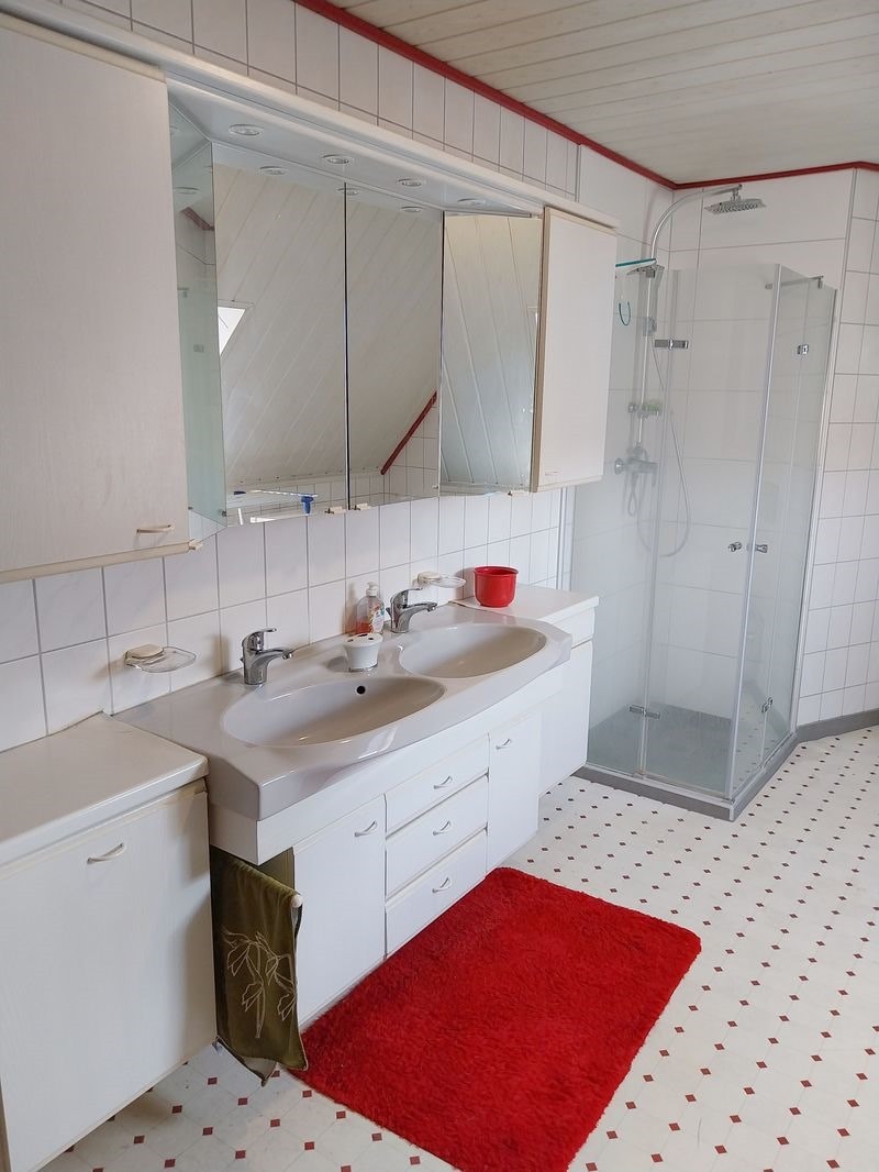 Im Obergeschoss befinden sich 3 Schlafzimmer, ein Wohnzimmer mit Balkon, ein Bad mit Badewanne und Dusche und eine Küche mit Speisekammer zur Verfügung.