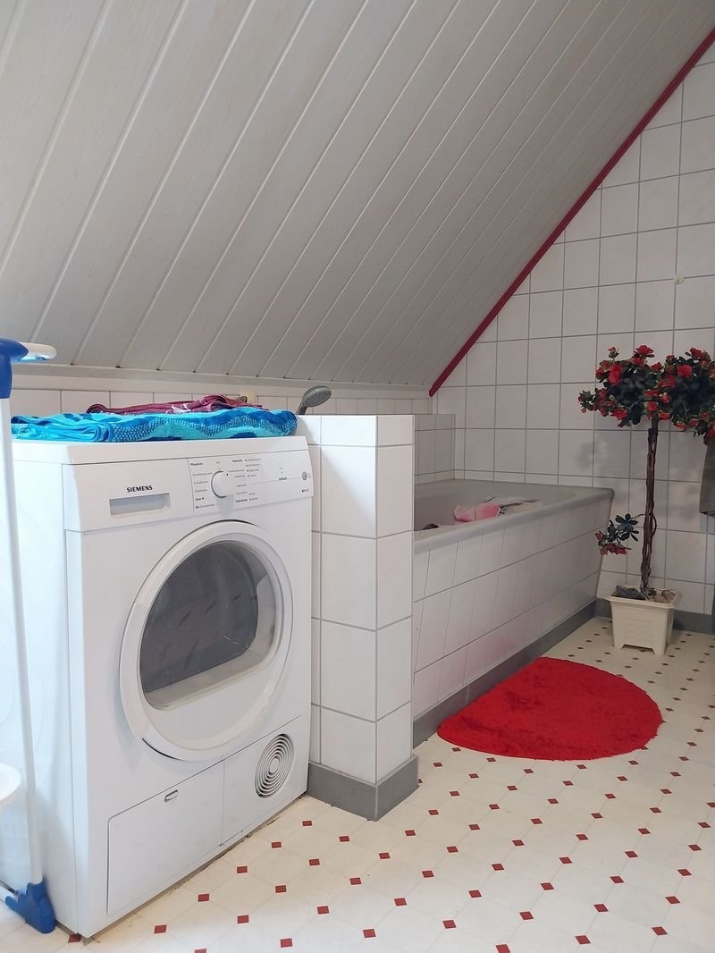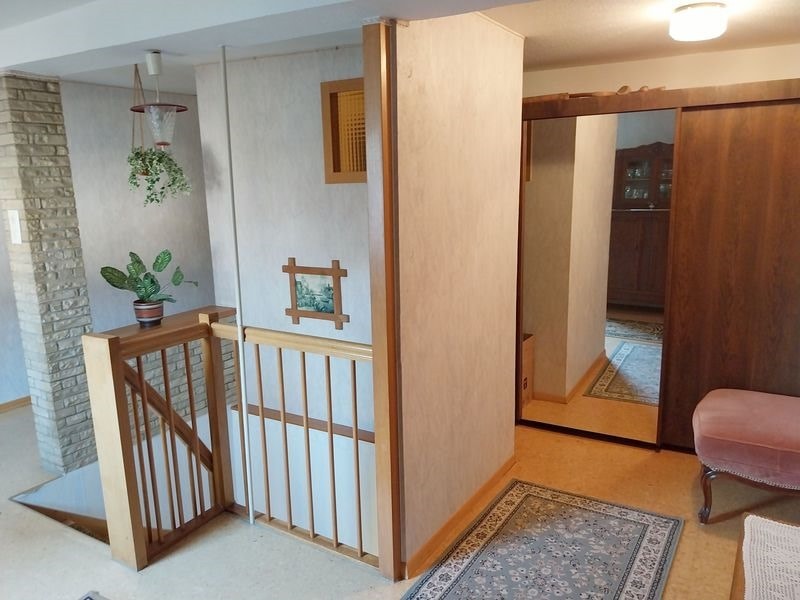 Hier sind ein großer Flur mit Sitzgelegenheit, 4 Schlafzimmer und ein Bad mit Badewanne, Dusche und Waschmaschinenanschluß.
